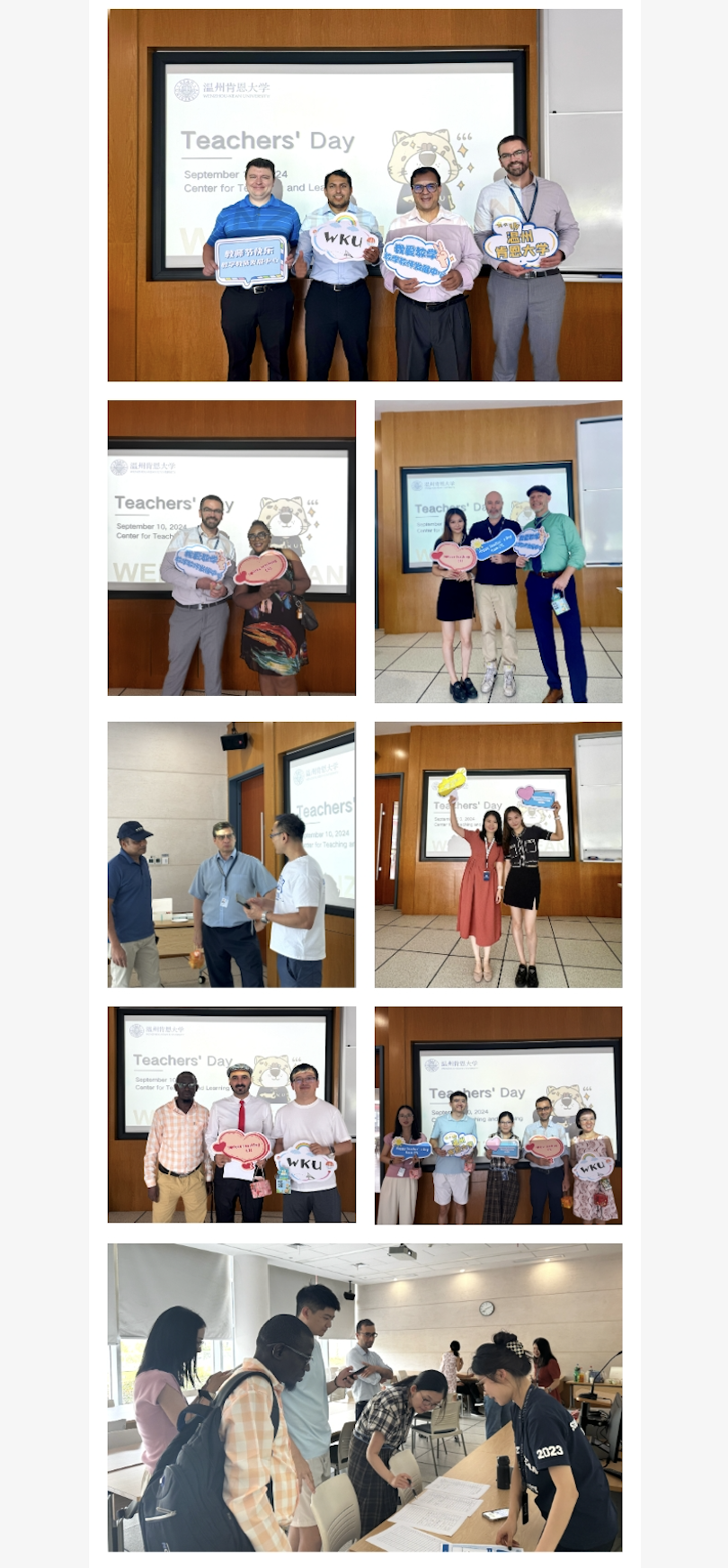 CTL's newsletter#12: 2024 Teachers' Day 2024-09-19 | CTL 双周简报 | Center for Teaching and Learning 分享到社交媒体 学院新闻 毕业“声”|张锦文:四年科研积淀,入手悉尼大学直博offer 校友“汇” | 冯嘉:毕业十年,金融之路从温肯起步 外眼看温州,温肯多重创新实践赋能“廊桥出海” 查看更多
