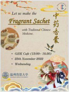 活动目标: 香囊文化传承已久,佩戴香囊既是一种民俗,也是预防疾病的一种方法。除了美观和药用价值,往往更多地寄托了人们的情感,也凝结着我国劳动人民的智慧。此次活动邀请中英语伴一起做香囊,识中药。通过中药香囊知识宣讲、互动体验中药香囊制作,以中医传统中药香囊的独特作用,展示中医药特色优势,传播健康生活理念,感受传统手艺的美妙。