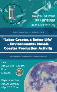 注:制作出来的马赛克杯垫将贴上2022年世界地球日标语,赠送给校内的教职员工,传递环保意识。